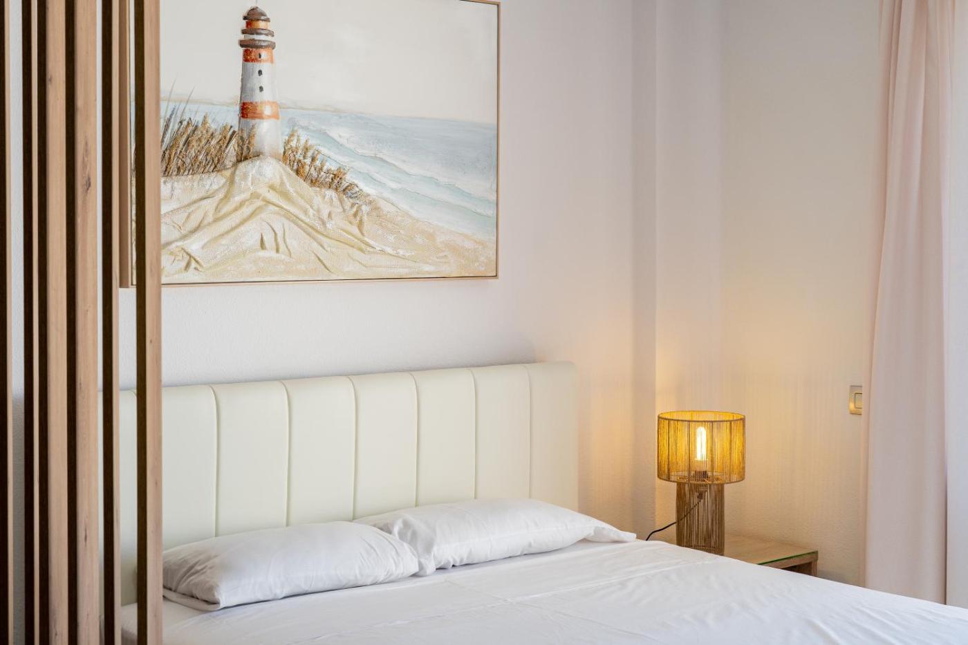 Estudio Doble Deluxe. A kitchen equipped with a refrigerator, a microwave and a tea and coffee maker is available for cooking and storing food. The spacious studio provides air conditioning, a washing machine, a terrace with sea views as well as a private bathroom featuring a shower. The unit offers 2 beds.