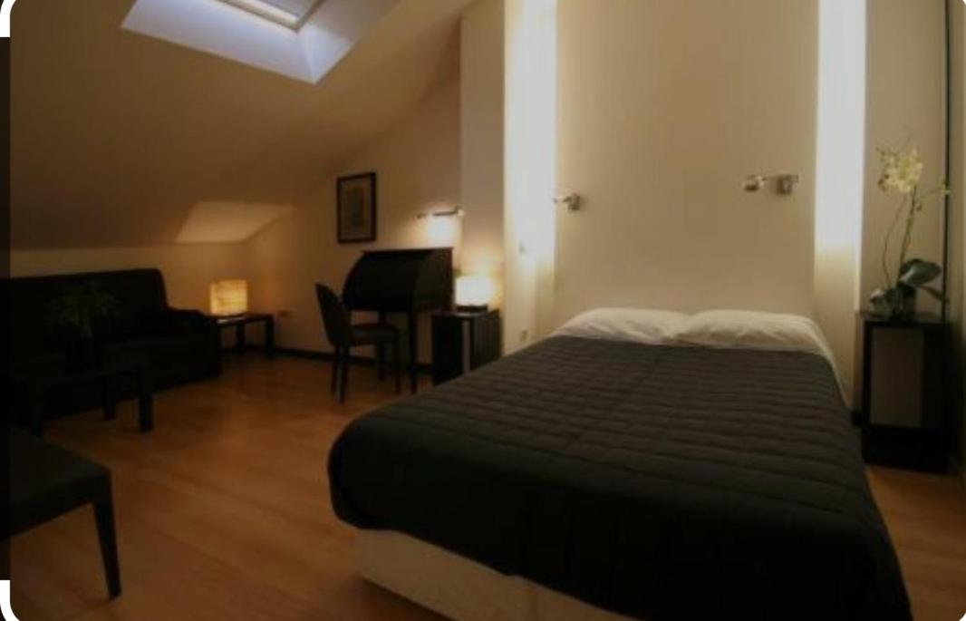 Habitación Doble con baño privado - 2 camas. The spacious twin room offers air conditioning, a wardrobe, as well as a private bathroom boasting a bath and a shower. This twin room has parquet floors, heating, a flat-screen TV and a quiet street view. The unit has 2 beds. ;