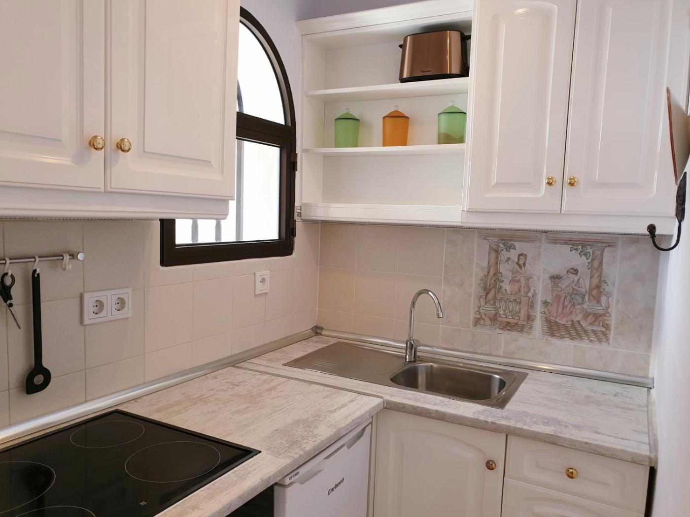Apartamento con terraza. Guests will have a special experience as the apartment features a pool with a view. Featuring a private entrance, this apartment consists of 1 living room, 1 separate bedroom and 1 bathroom with a shower and a hairdryer. Guests can make meals in the kitchen that is equipped with a stovetop, a refrigerator, kitchenware and a microwave. Boasting a terrace with sea views, this apartment also provides a washing machine and a flat-screen TV with satellite channels. The unit offers 2 beds.
