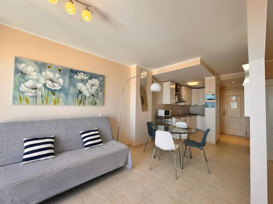 El apartamento cuenta con terraza y vistas al mar, y dispone de 1 dormitorio, una sala de estar, TV de pantalla plana, una cocina equipada con nevera y microondas, y 1 baño con ducha. Hay toallas y ropa de cama en el apartamento.